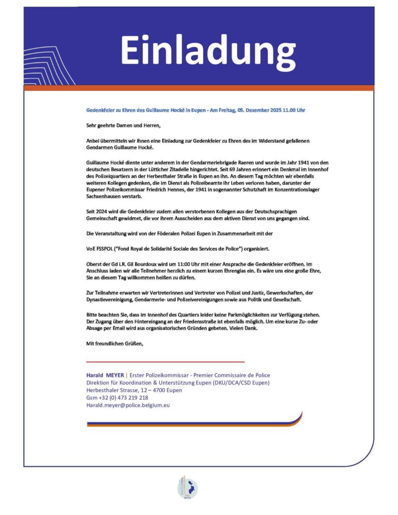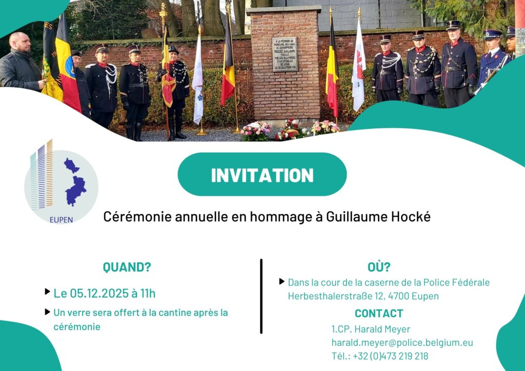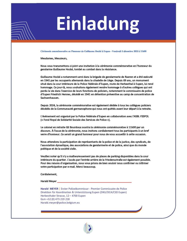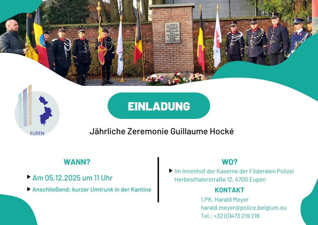 Activités Assemblée Générale/Algemene VergaderingCalendrier des commémorations/HerdenkingskalenderActivités passées – photos/Afgelopen activiteiten – foto’s Votre ASBL participera ce 5 décembre 2025 à la commémoration annuelle en hommage à Guillaume Hocké à Eupen. Uw vzw neemt op 5 december 2025 deel aan de jaarlijkse herdenking ter ere van Guillaume Hocké in Eupen.